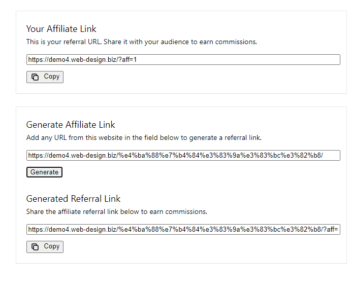 If you would like to freely introduce a specific page, you can generate an affiliate link for your favorite page by clicking Generate Affiliate Link.