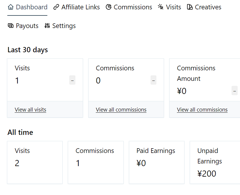 Since the membership costs 1,000 yen, 20%'s 200 yen is the affiliate reward.