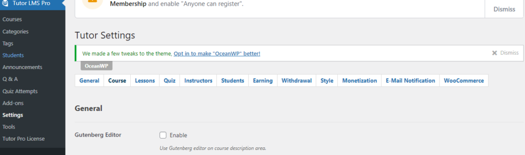 This explains the basic course settings for the LMS plugin TutorLMS.