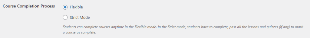 - Strict Mode – You can only complete the course if you complete all lessons and pass all quizzes and assignments.