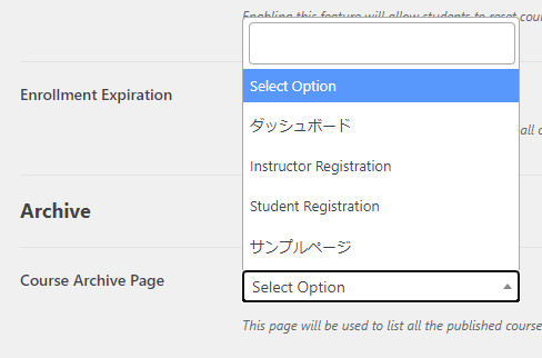 Create a static page for the course archive auto output page and set it. If you do not need it, you do not need to set it.
