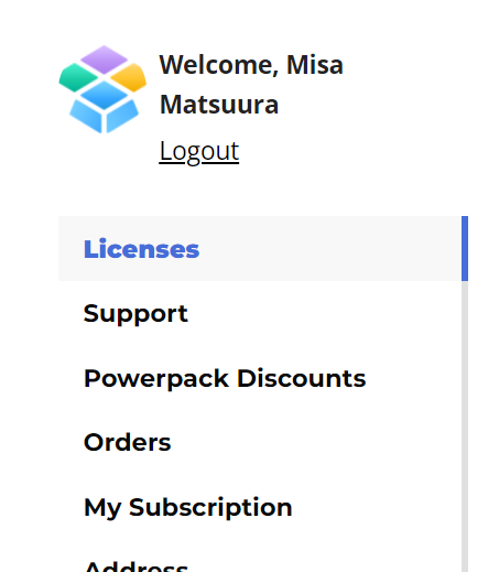 The list of download files and license number are listed under License on your My Page.