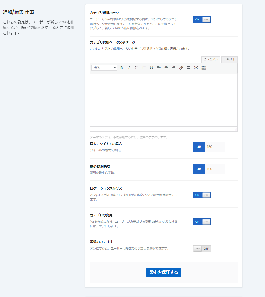 Users list their services through an add listing page like this one, and the settings that control this page are the Job Page Settings.