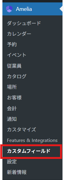 カスタム項目を【Enable】にすると、Ameliaのサイドバーに【カスタムフィールド】の項目が追加されます。