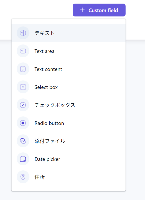 使えるカスタムフィールド