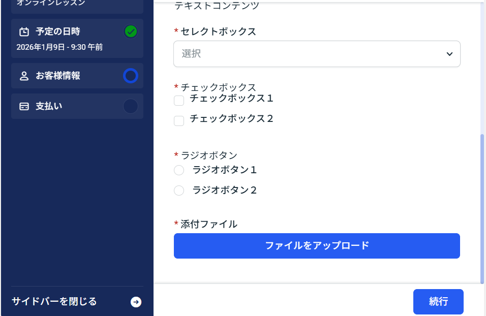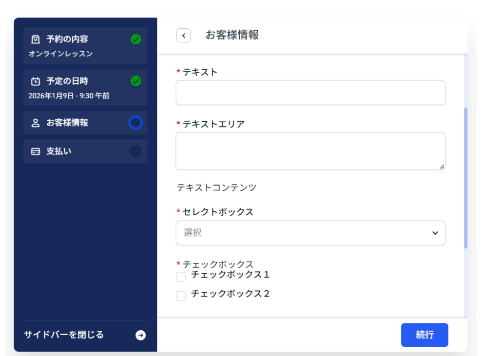 予約時に入力してもらうカスタムフィールドを設定します。