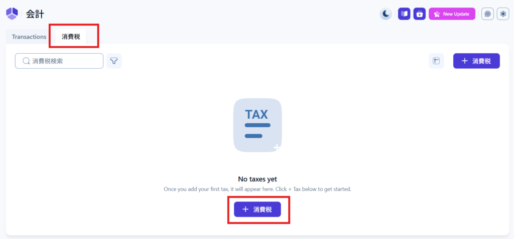 次に、Amelia > 会計に移動して、消費税の設定をしていきます。