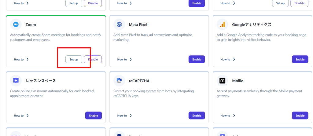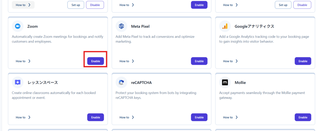 連携機能タブにあるZoomを【Enable】にします。
