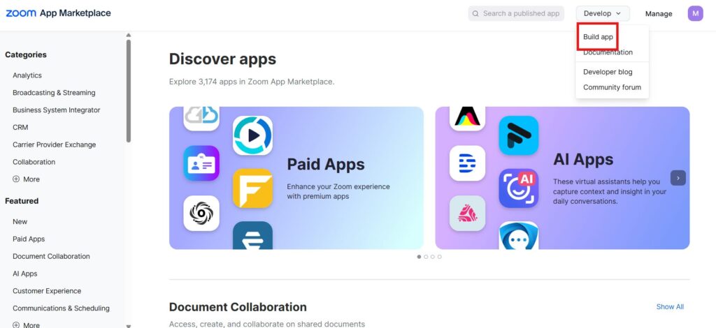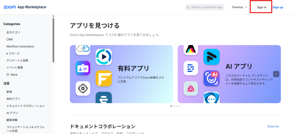 Zoom App Marketplaceでアプリケーションを作成