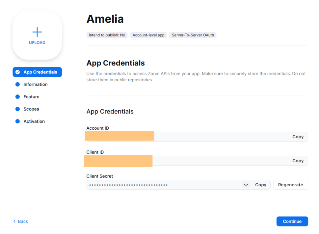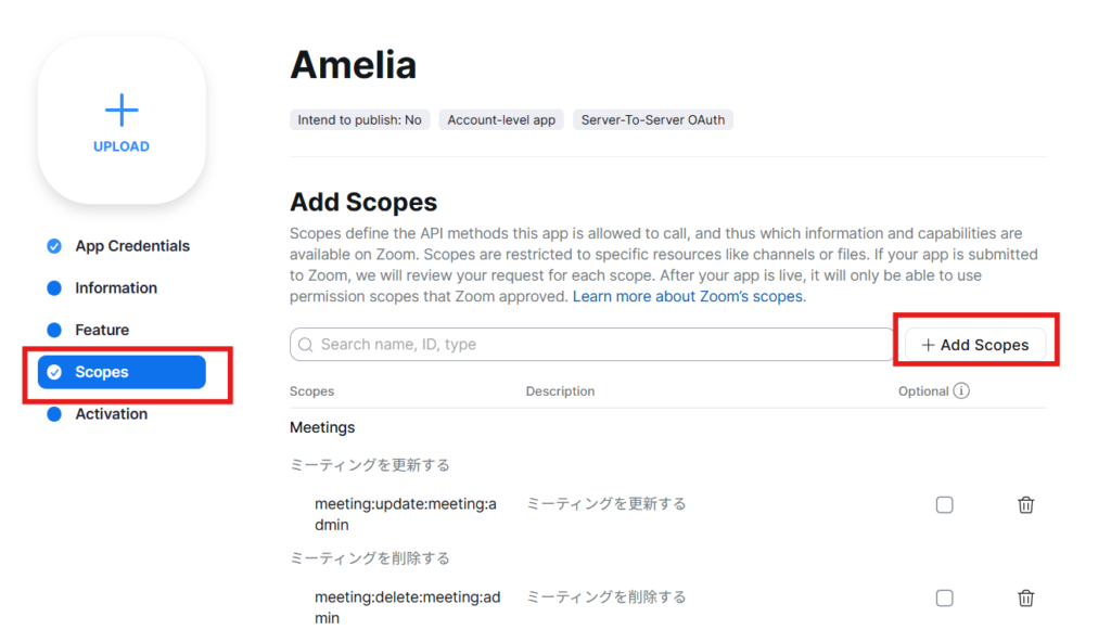 こちらの情報をAmeliaのZoom設定内に入れていきます。