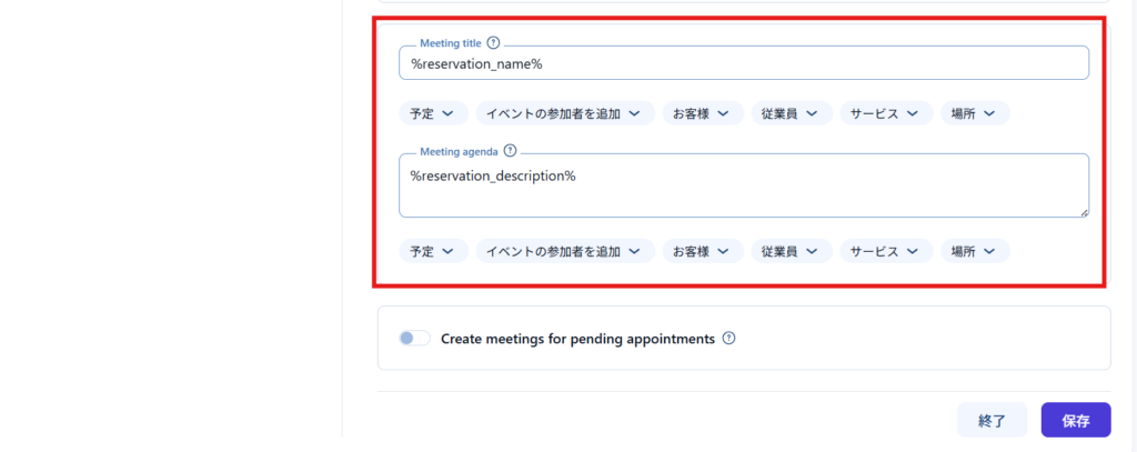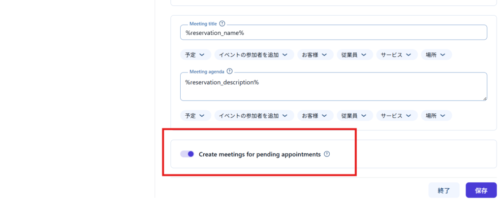 保留中の予約でもzoomURLを発行したい場合はこちらをONにします。