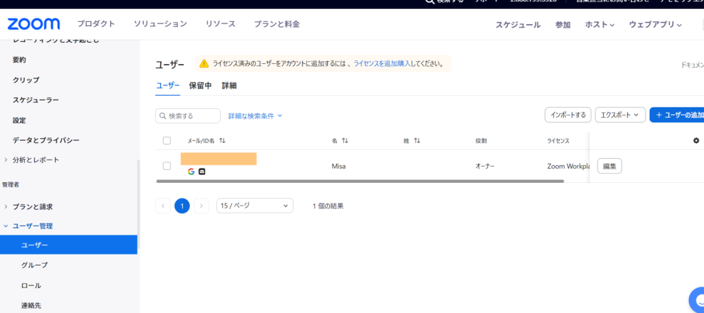 zoomの設定内(https://zoom.us/account/user#/)で、ユーザー管理 > ユーザー内にユーザーが追加されている場合は、Amelia側で登録されているユーザーとzoomの連携を行う事ができます。