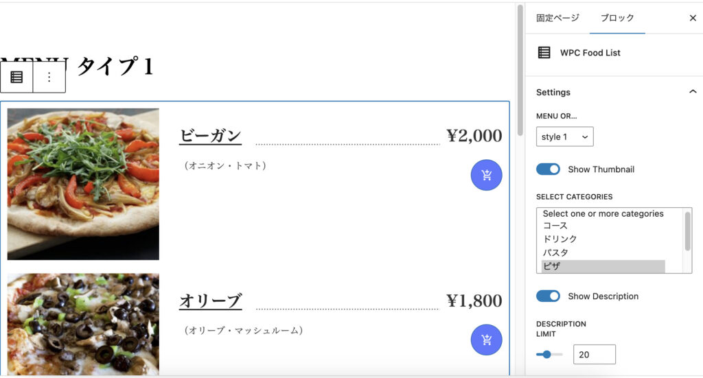 This is a block that outputs the menu registered from the product.