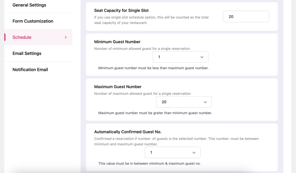 - Minimum Guest Number - The minimum number of people allowed in one reservation