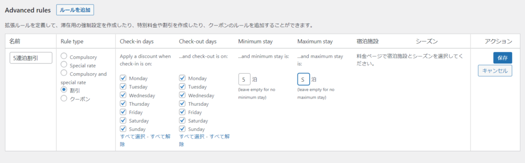 If the settings do not work properly just by controlling the check-in/check-out days and the maximum/minimum number of days, you can make additional settings.
