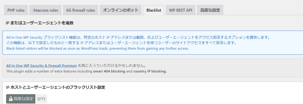 WordPress security enhancement plugin All in one WP Security ~ Explains how to add to the blacklist and deny access