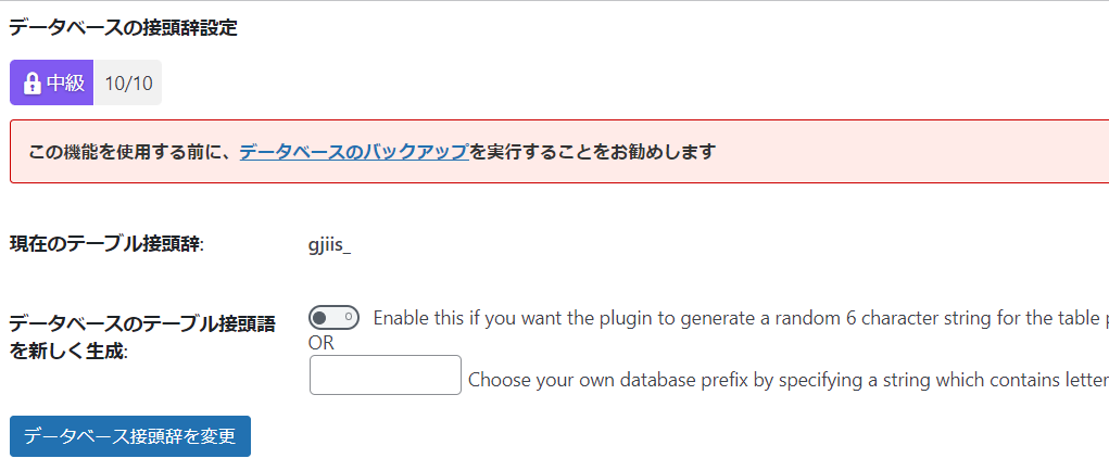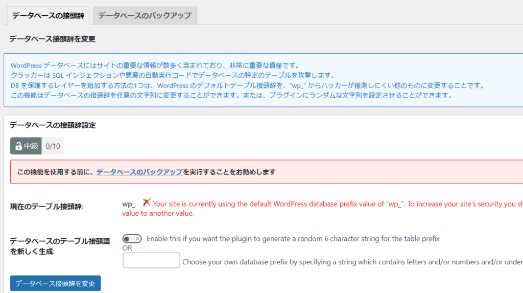 WordPress security enhancement plugin All in one WP Security ~ Settings to enhance database security