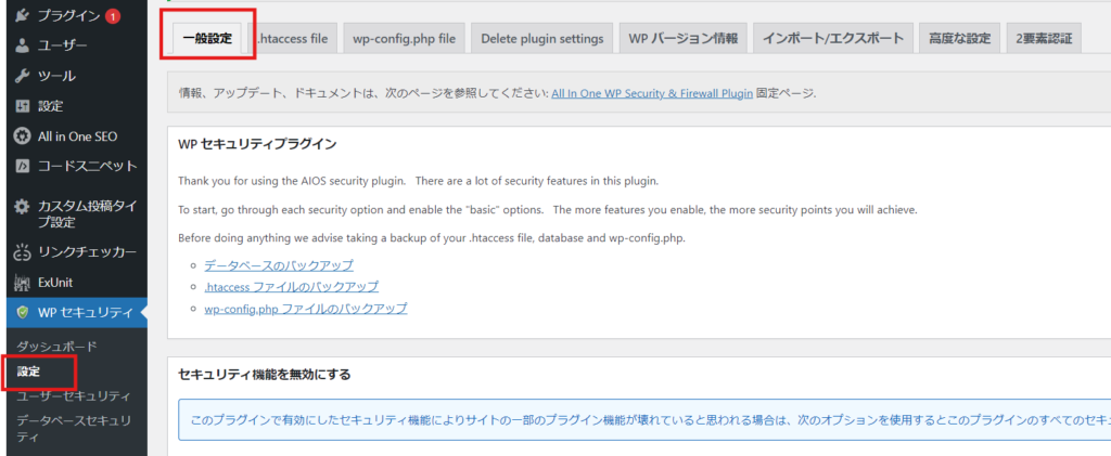 WordPress security enhancement plugin All in one WP Security ~ Installation ~ General settings explained