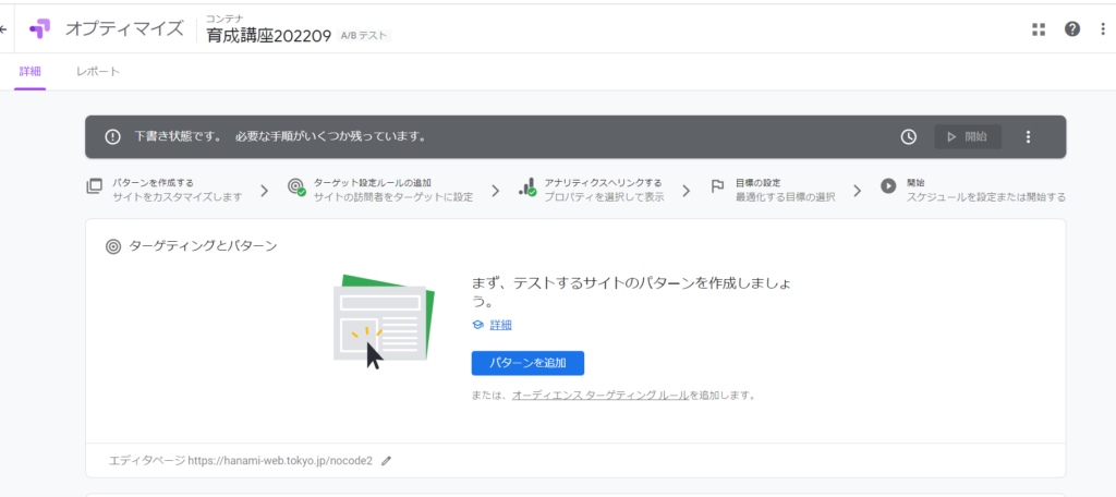 I set the period for A/B testing using Optimize. I felt that I needed to study how long a period I should take statistics for.