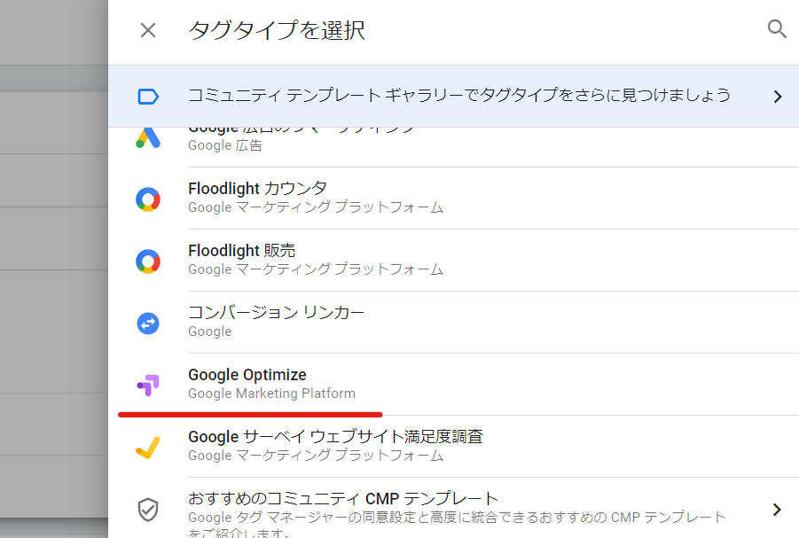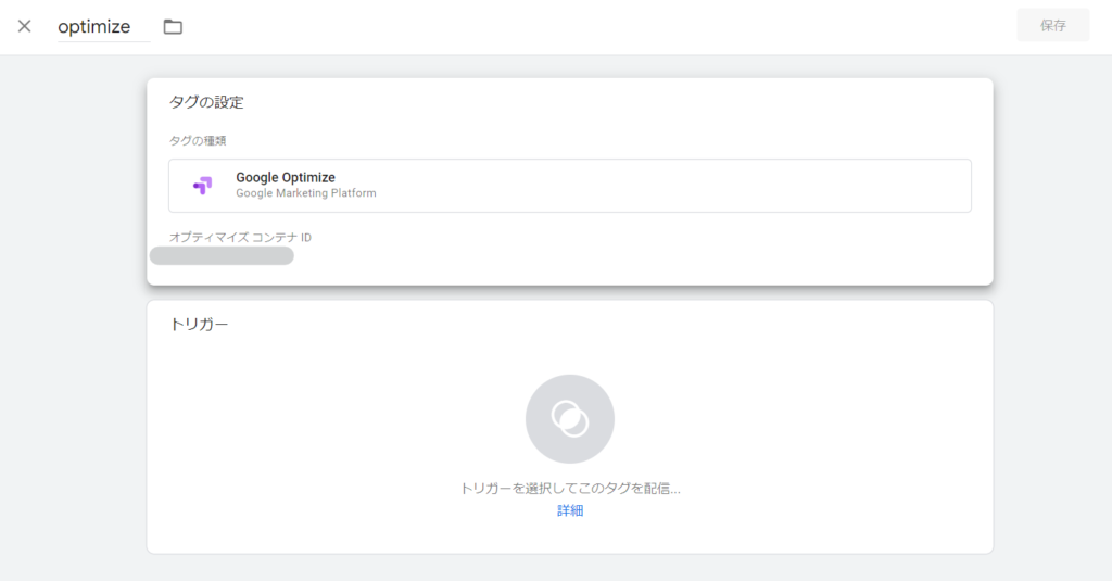 Select [Google Optimize] as the tag type. After that, you will be asked to enter the container ID, so enter the container ID you confirmed earlier.