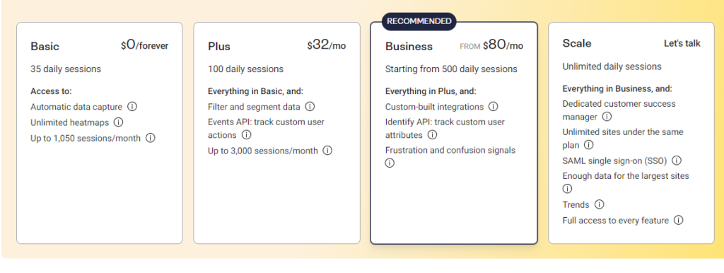 Hotjar Business Plan $80/mo