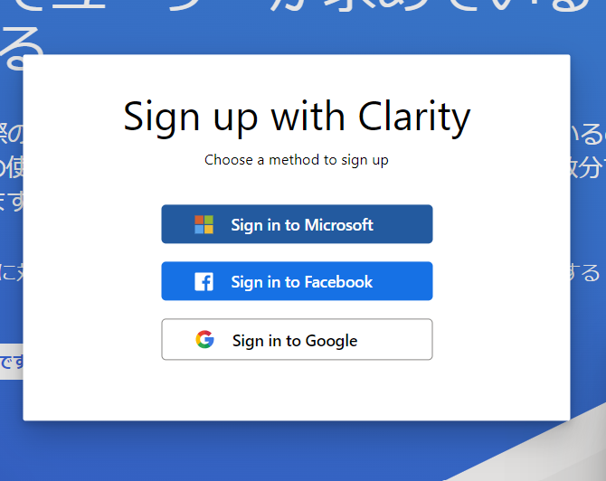 Since you will want to set up site measurement via Google Tag Manager, it will be much smoother if you create a Clarity account with your Google account.
