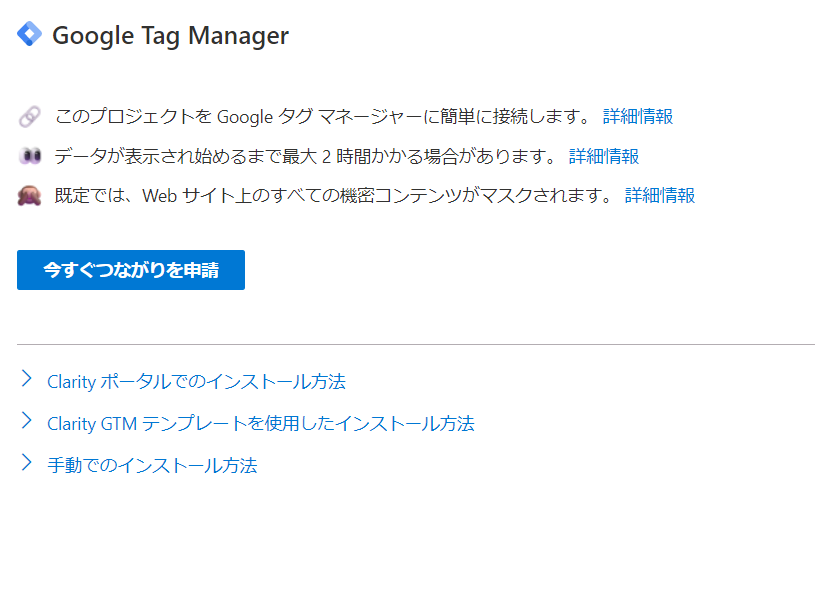 Using Google Tag Manager, you can easily connect to Clarity without writing any code, so I always set up Google Tag Manager before installing Clarity.
