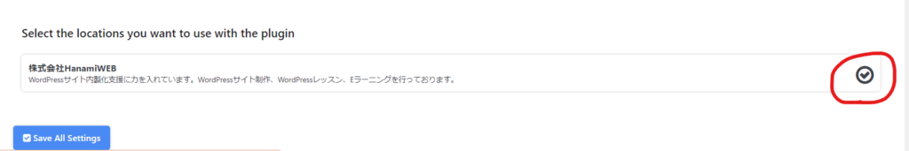 If you see a screen like this, you have succeeded. Wait and when the connection to Google My Business is complete, click the [Save All Settings] button to save the settings.