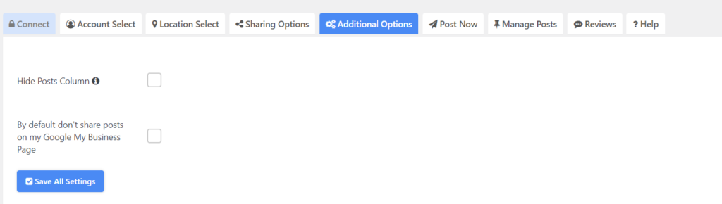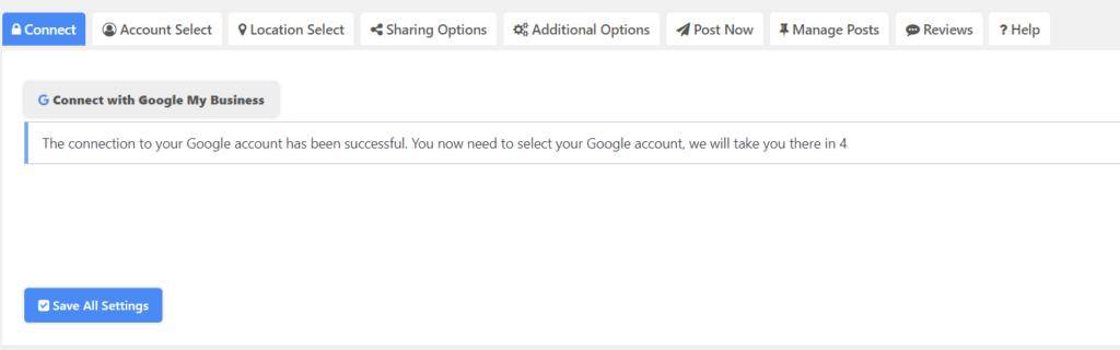 Select the icon to the right of your Google My Business account and click [Save All Settings] to save.