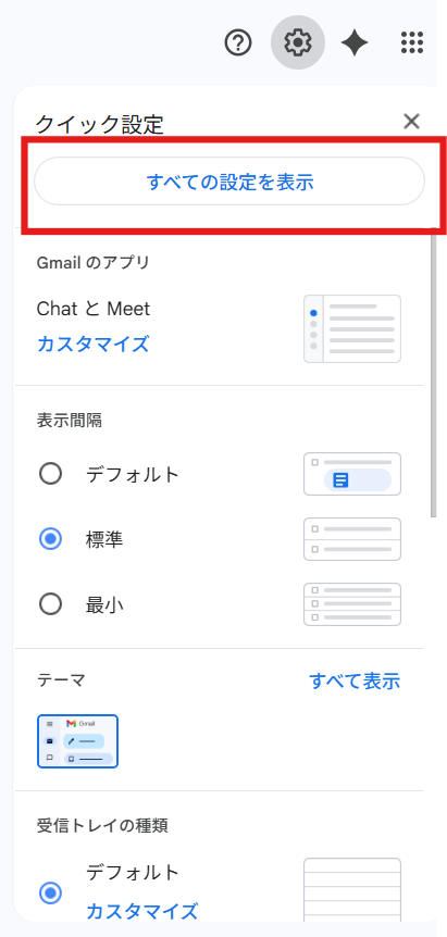 Click the gear in the top right corner of Gmail.