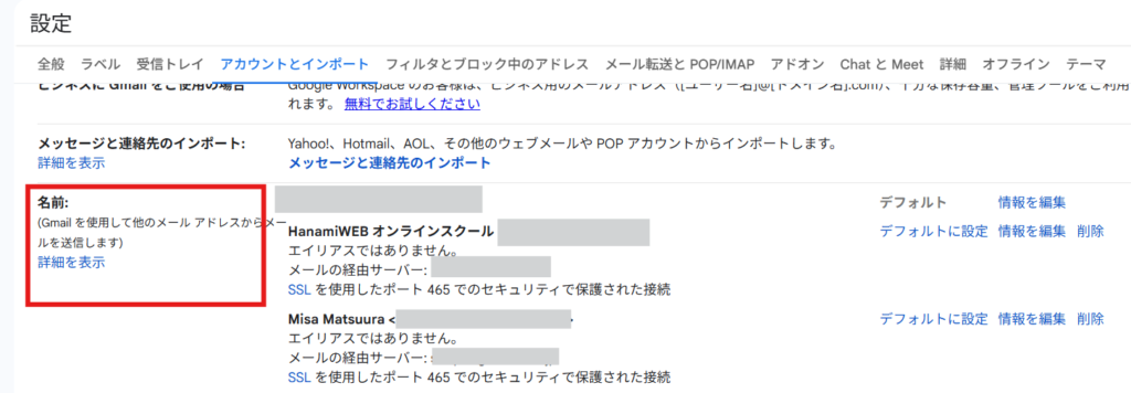 In the [Accounts and Import] tab, under [Name], you can find the setting for sending emails from an external email address. If the email address you want to set up is entered here, there is no problem.