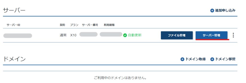 After logging in to the xserver server panel, click [Server Information] to display the information.