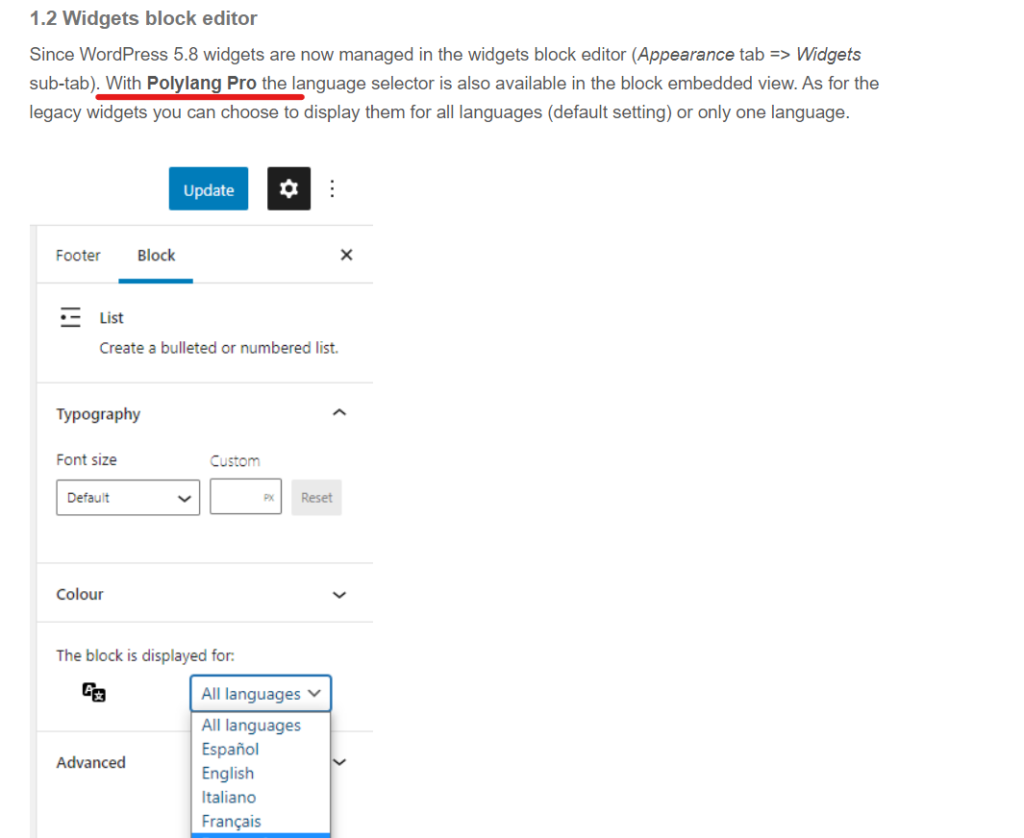 Multilingual blocks are displayed in the widget