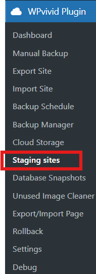On your staging site, go to WPvivid Plugins > Staging Sites.