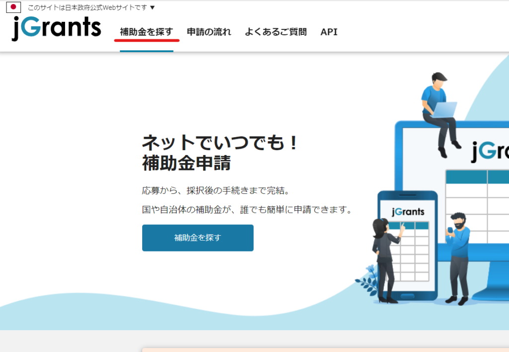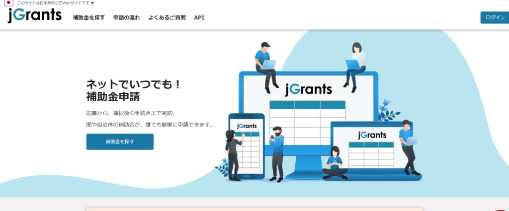 ネットで申請するにはgBizIDのプライムまたはメンバーの登録が事前に必要ですが、申請はjGrantというサイトから行います。