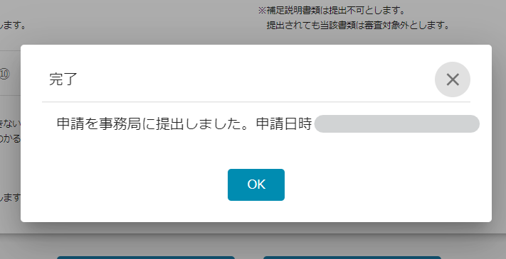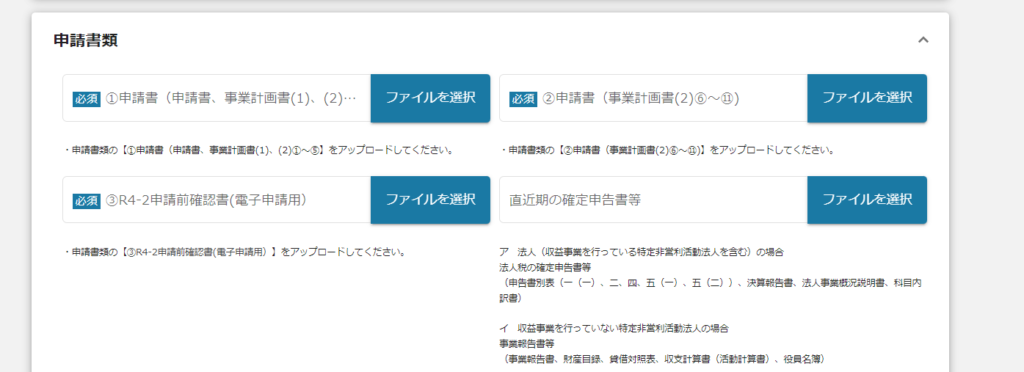 創業助成事業申請書の各種ファイルをアップロードしたらもう申請です。【申請する】ボタンをクリックしたら終了です。