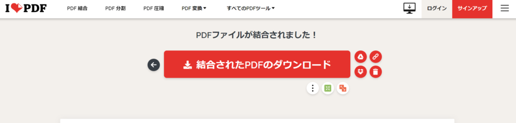 サイトへアクセスをして、2種類のファイルをっぷロードし、【PDF結合】をクリック