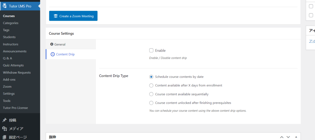 今回は、TutorLMSの有料版機能限定のレッスンやクイズの公開日を設定できるコンテンツドリップ設定を解説しています。
