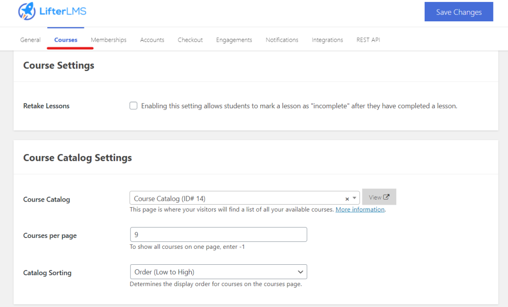 - Retake Lessonsーコース完了後でも、受講生が未完了へステータスを変更できようにする場合チェックを入れます