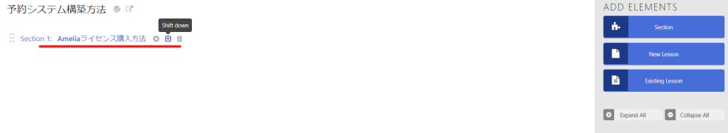 【New Lesson】をクリックしてsectionの中に入れるレッスンを追加していきます。