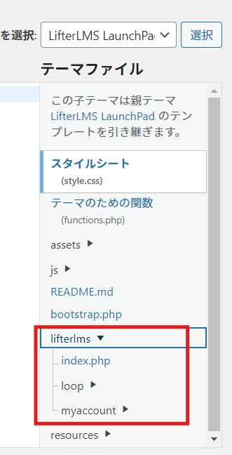 子テーマの「lifterlms」階層に追加
