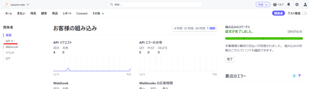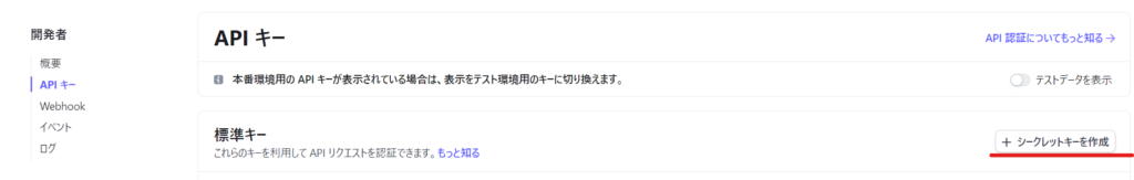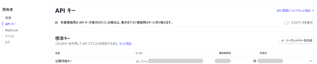 シークレットキーと公開キーはWordPressのStripeの設定の中に入力します。