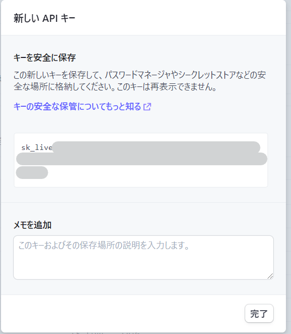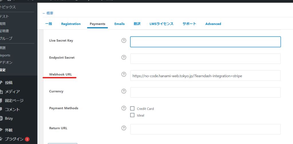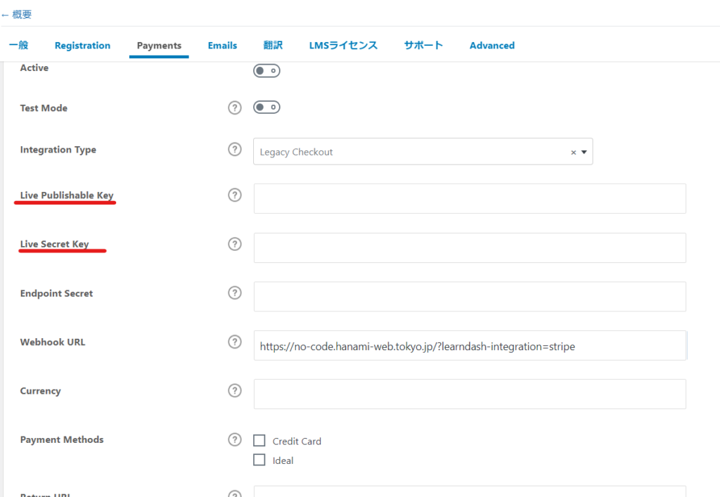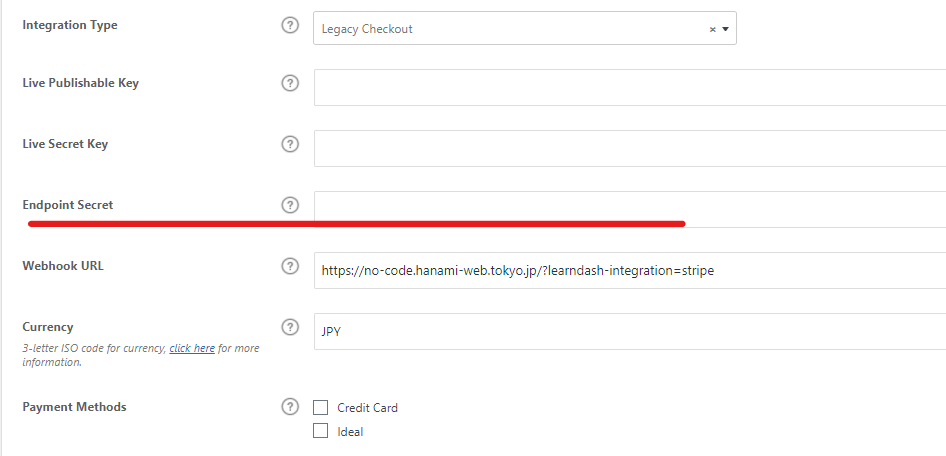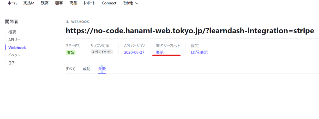 表示されたシークレットキーをLearnDashのStripe設定に貼り付けます。