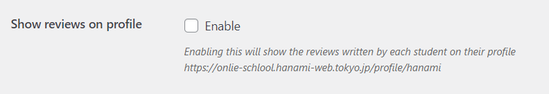 チェックを入れると、プロフィールページでレビューを見る事が出来るようになります