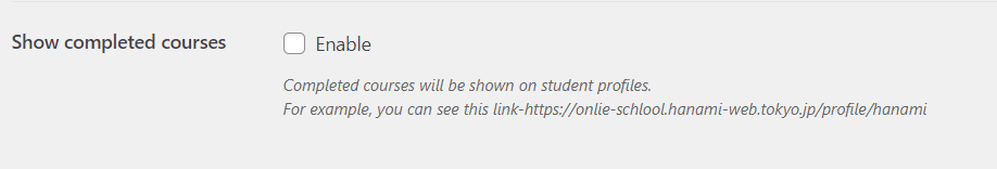 チェックを入れると、完了したコースをプロフィールページで見る事が出来ます