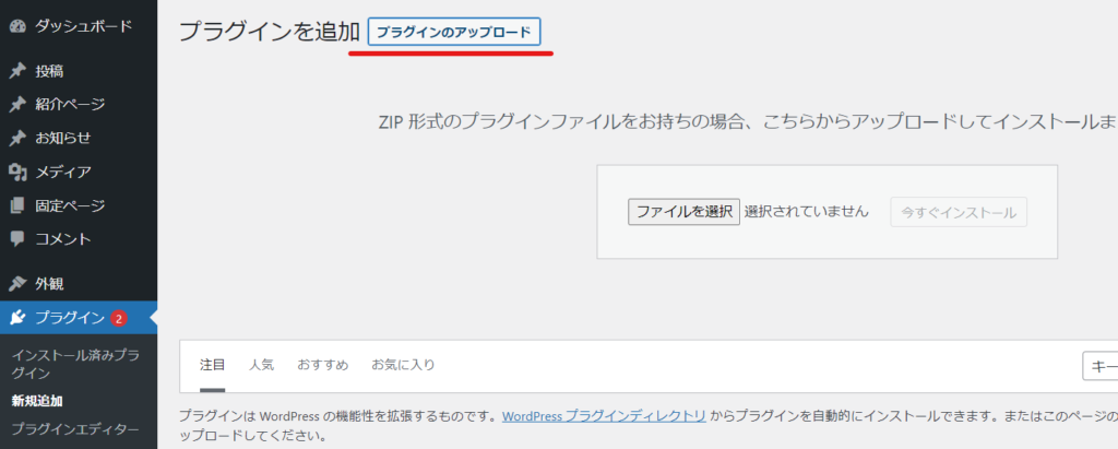 - プラグインのアップロード