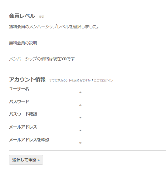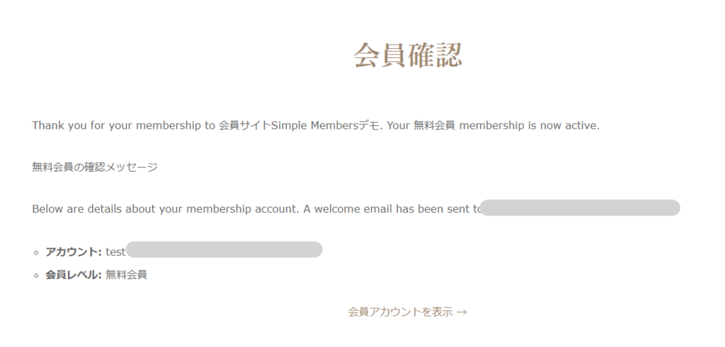 メンバーシップを作成した時に入力した確認メッセージがこの部分に出力されています。