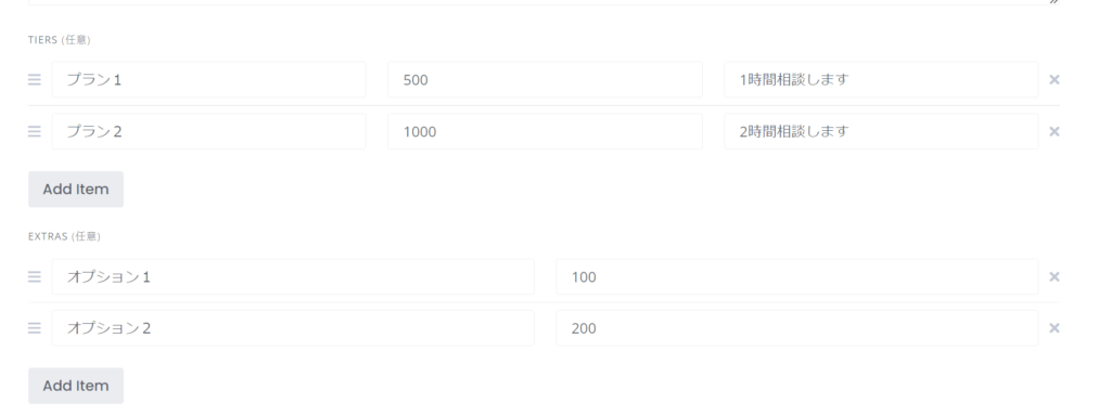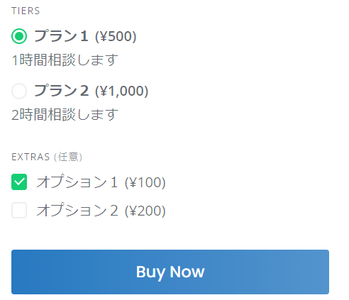 TIERSはプランを意味しており、購入者は基本プラン価格に追加でEXTRAというオプションを追加できます。