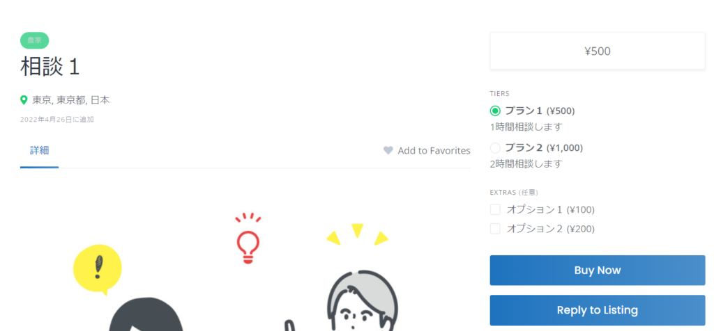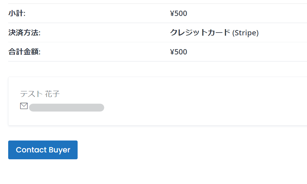 詳細を開くと、【Conntact Buyer】というボタンがあり、こちらから購入者とプライベートチャットをスタートします。