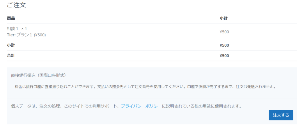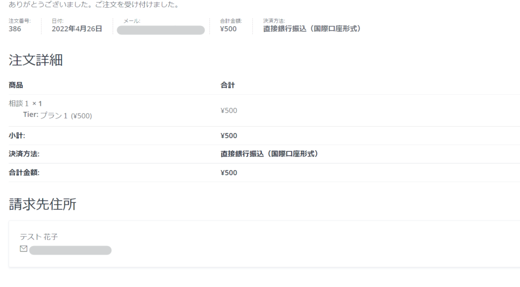 ※テスト段階で銀行振込で動かしているため、管理者側で手動で支払い完了にステータスを変える必要があります。